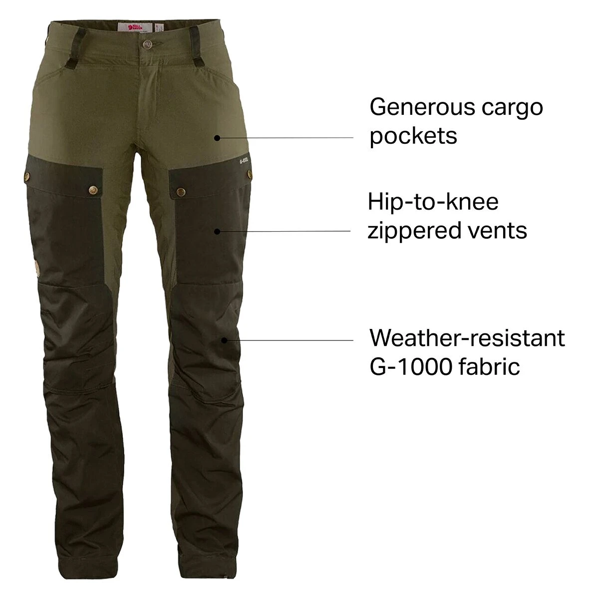 Fjallraven made the Keb Curved Trouser from hardwearing materials, and designed it for performance on the move, making the Keb ideal for technical trails and long treks in the backcountry. Durable G-1000 fabric is both environmentally friendly and weather-resistant, made from recycled and organic materials that defend against harsh terrain. Strategically placed panels incorporate elastane for full mobility on tricky ascents, and the entire face can be treated with Greenland Wax when we need a boost of protection from rainy weather. Fjallraven equipped them with two generous snap-down cargo pockets for stashing trail maps or snacks, as well as zippered vents to help cool off if the day warms up.