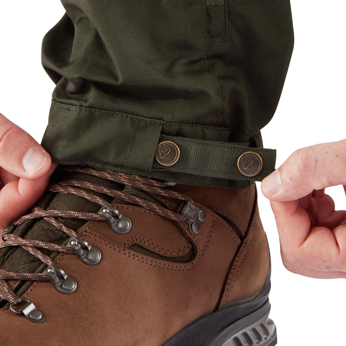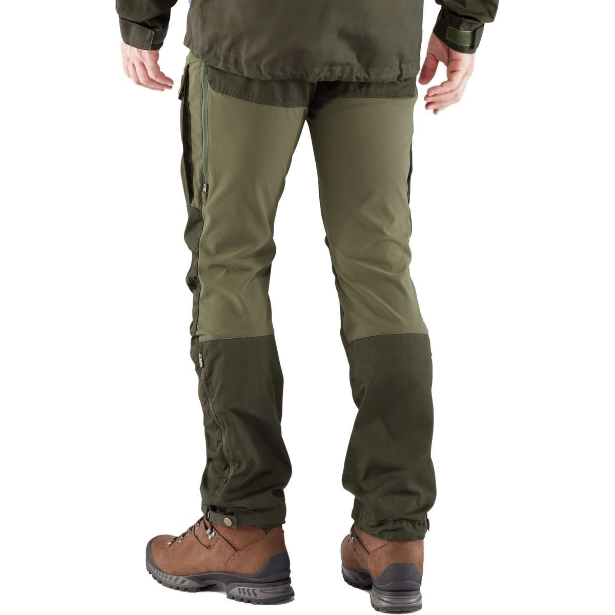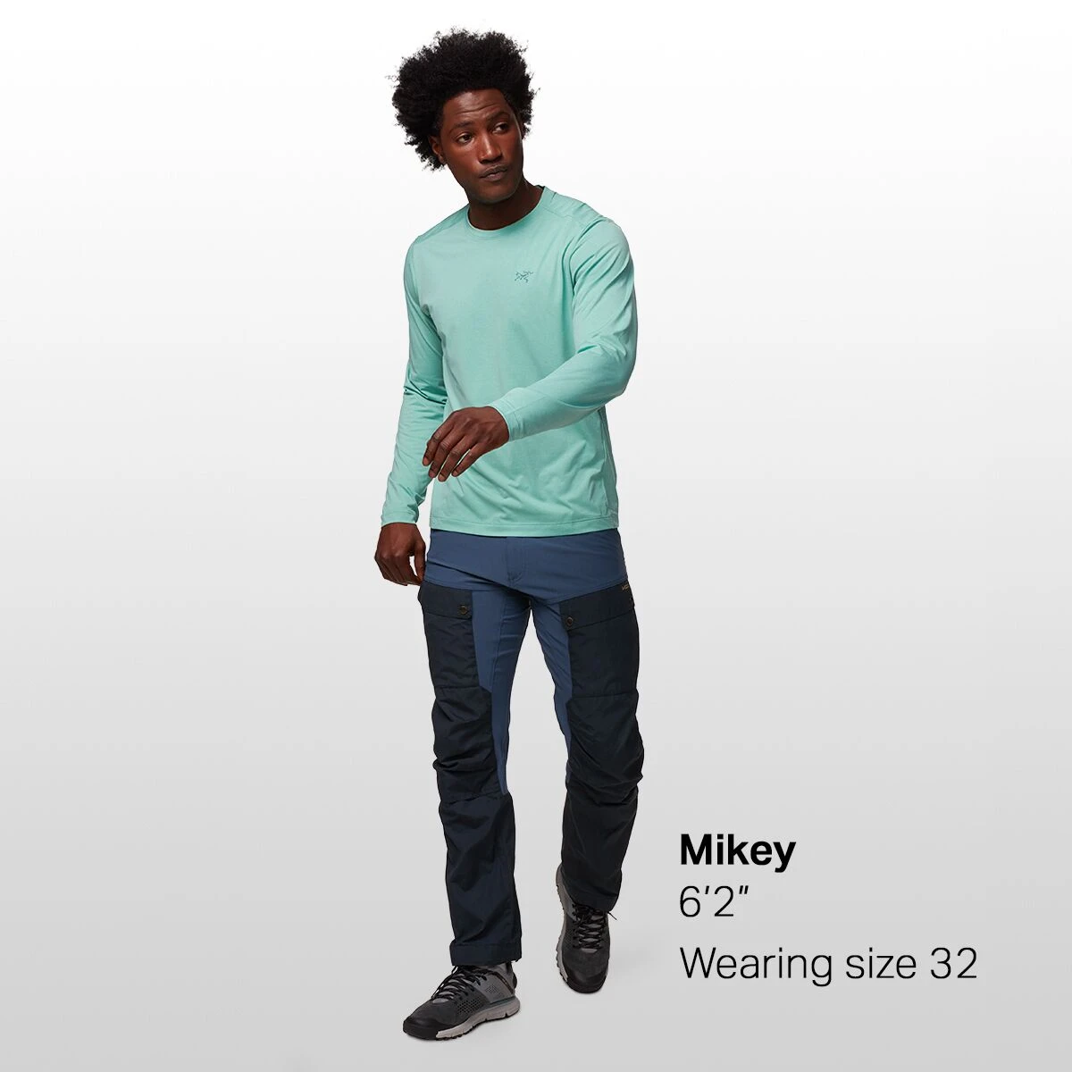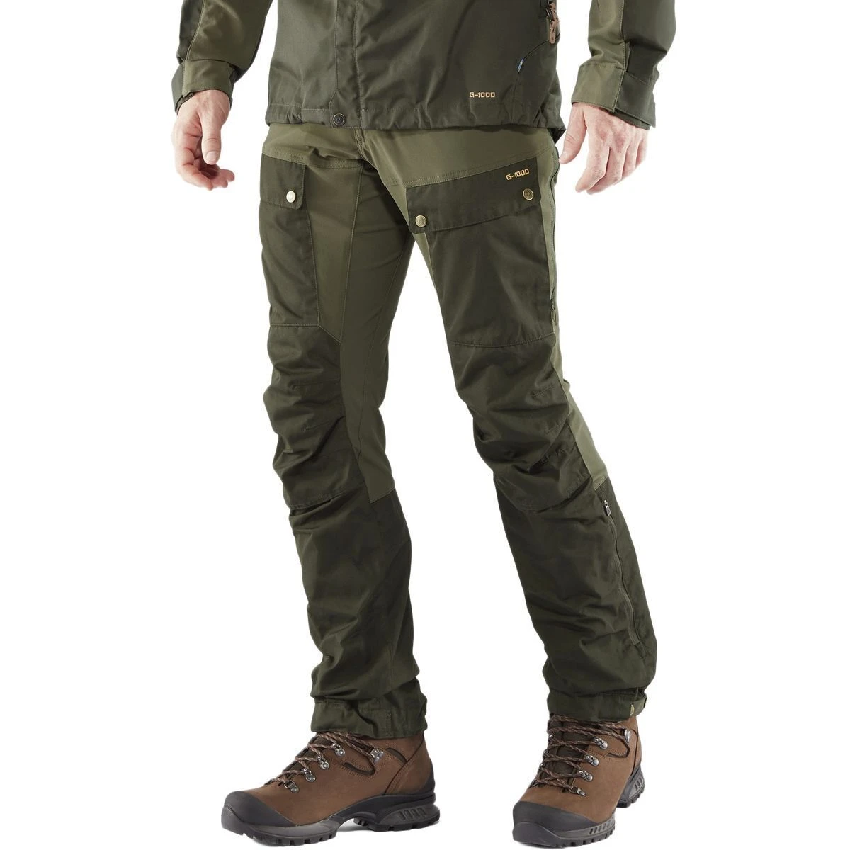 Built for our most rugged trails, the Fjallraven’s Keb Trouser is made of a tough, stretchy fabric and reinforced with G-1000 Eco panels for serious freedom of movement and durability. The articulated knees have extra-strong seams so we don’t blow them out, while zippered vents and an extended fly keep us cool when the going gets hot.