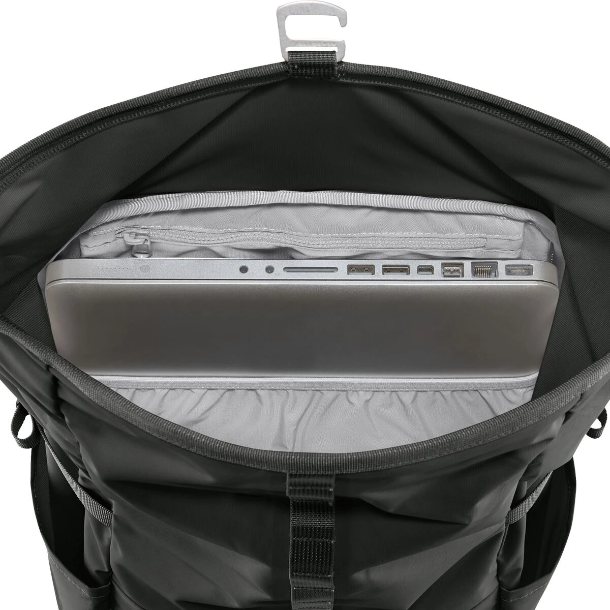 - Pockets: [external] 1 front, 2 side, [internal] 1 sleeve, 1 zippered