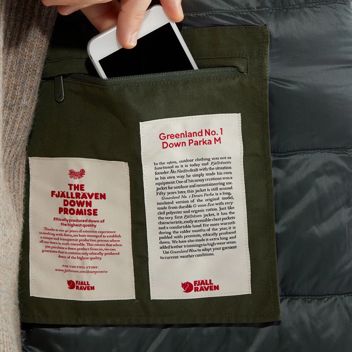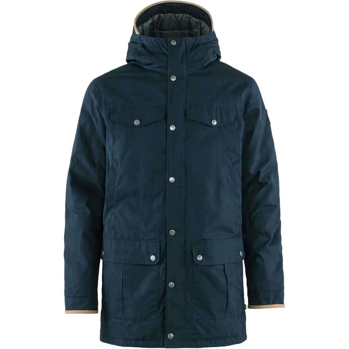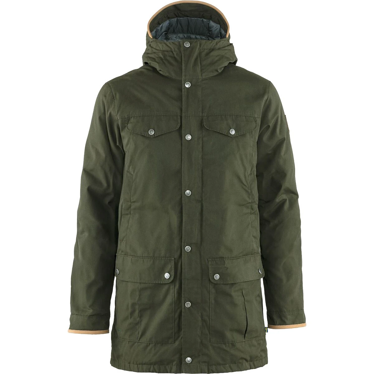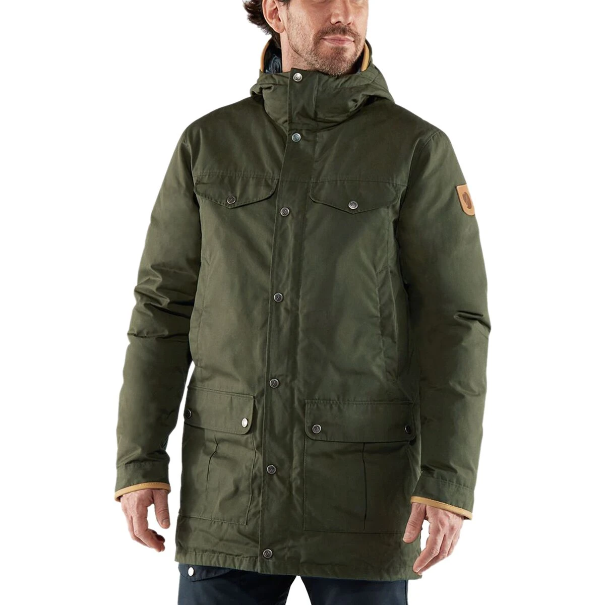 As you stand at your kitchen window and see whitecaps on the winterโs ocean and windsocks blowing steadily inland, the Fjallraven Greenland No. 1 Down Parka on your coat hook is your everyday winter-shield for life outdoors. Premium G-1000 Eco exterior fabric covers 800 fill goose down for protection and insulation as you venture out to town. For powerful gusts of wind, zip up the front zip and button down the cover to seal in the warmth. Tossing up the hood protects your face from super chilled, moist air, and deep pockets hold more than enough room for hand warmers. Flap-top style chest pockets keep your checklist for the day, and an internal zippered holds onto more critical valuables.