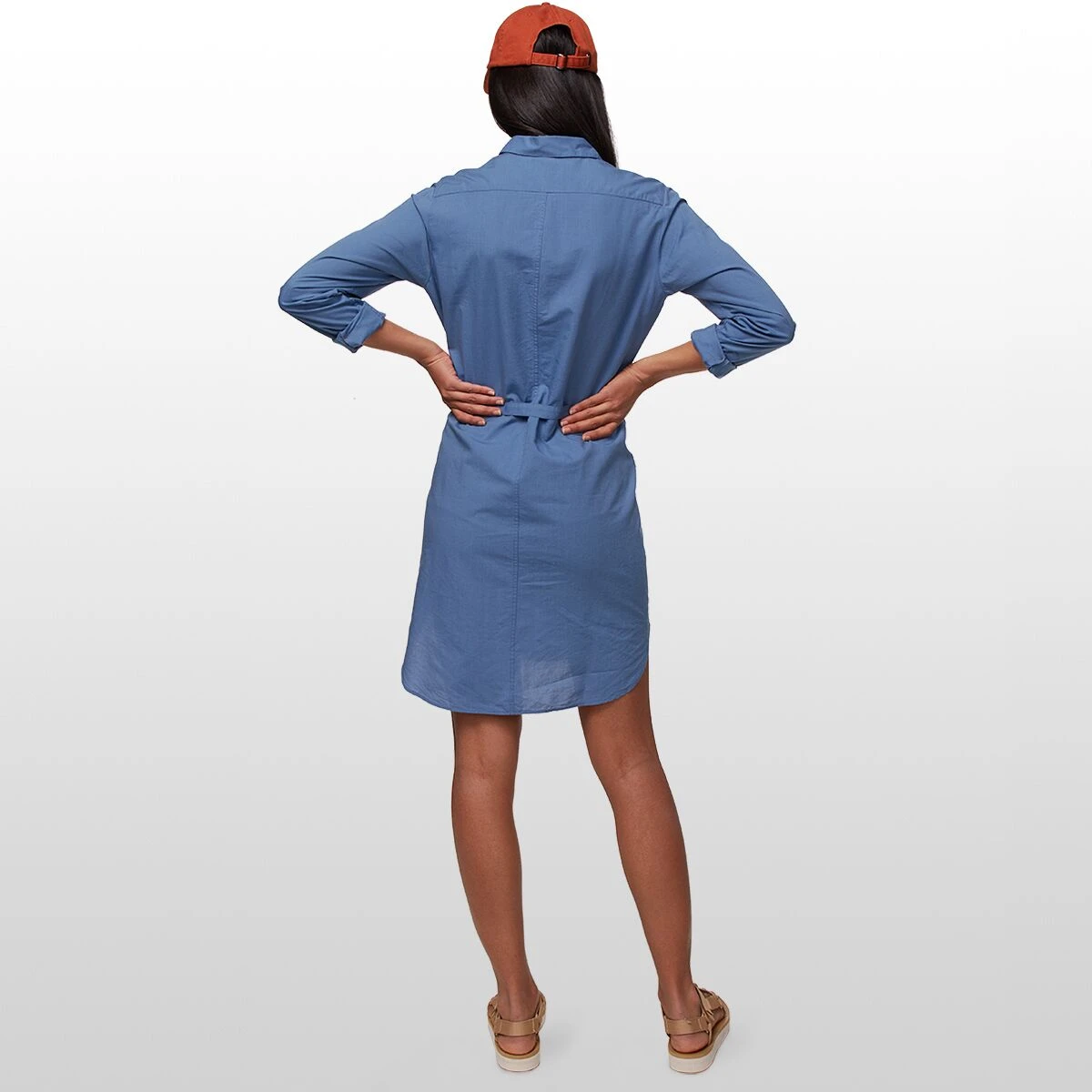 Cool and lightweight, this dress is a dream in warm weather. Tie-waist adds a feminine shape to this tailored shirt-dress, making it as ideal for everyday wear at the office as it is for our adventures.