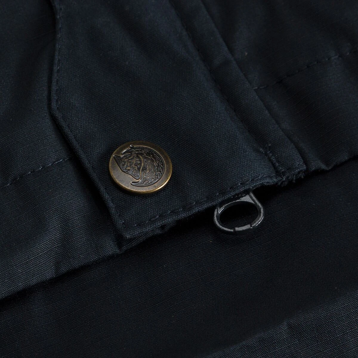 Shoulder season hiking, rainy days spent fishing, and cool weather walks around town are all in a day’s work for the Fjallraven Men’s Skogso Jacket. Made with Fjallraven’s G-1000 fabric, this jacket is treated with a water-resistant Greenland wax coating (sold separately) that can be removed or reapplied through a simple application process. The jacket uses a lighter version of the fabric throughout the body for a lighter feel that performs well in warmer temperatures, but as not to compromise durability, the jacket is reinforced at the shoulders and arms, so you hike with ease knowing the jacket won’t tear easily. Pre-shaped elbows give the jacket an ergonomic fit, and the adjustable cuffs and hem help to seal in heat when things start to get chilly.