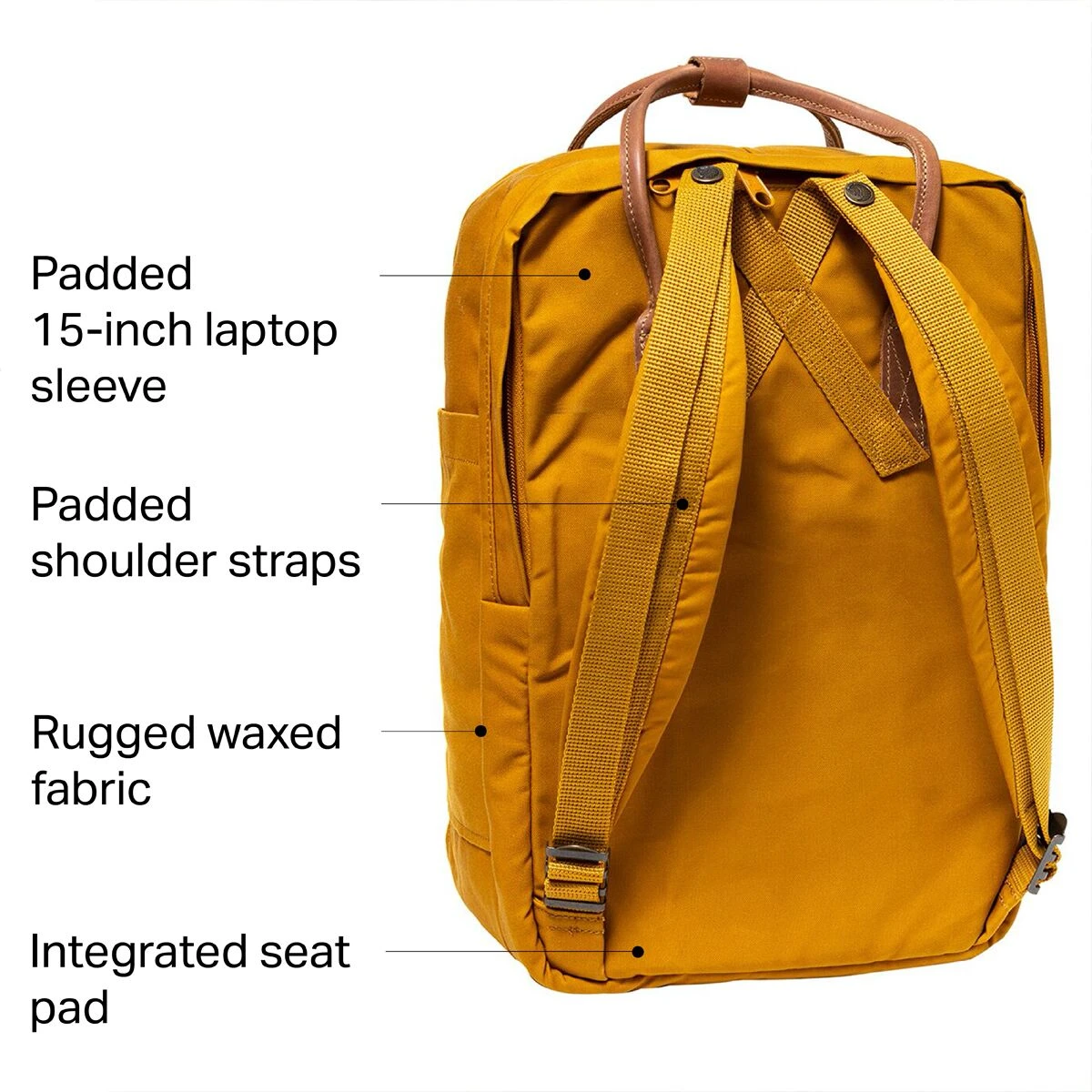 Evocative of snow-laden peaks and crusty granola, the Fjallraven Kanken No.2 Laptop 15in Bacpack effortlessly brings a mountain-inspired look to the forefront of your daily grind. This classically styled backpack features a tenacious G-1000 fabric that withstands concrete and tree branches alike, while the wax coating ensures added protection from light precipitation. Additionally, the Kanken No.2 is fashioned with a myriad of pockets to keep you well-organized, and the internal rear pocket boasts an integrated seat pad for those impromptu chill sessions in the park or on a hillside. And, new to the Kanken No.2 is the designated laptop sleeve that’s equipped to fit a 15-inch laptop, so you never have to be without your choice in technology.